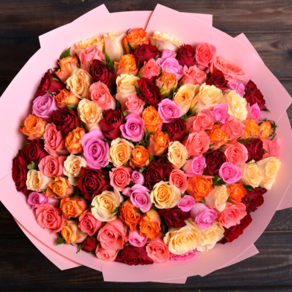 Buchetul de 101 trandafiri mix este o explozie de culoare și frumusețe, simbolizând diversitatea emoțiilor și trăirilor intense. Fiecare trandafir, într-o varietate de nuanțe vibrante care creează un aranjament spectaculos, plin de energie și vitalitate. Acest buchet grandios transmite un mesaj de iubire infinită, apreciere și bucurie, fiind ideal pentru momentele în care dorești să impresionezi cu adevărat. Cu un impact vizual de excepție, buchetul este perfect pentru aniversări memorabile, evenimente speciale sau ocazii în care vrei să exprimi emoții complexe și profunde.