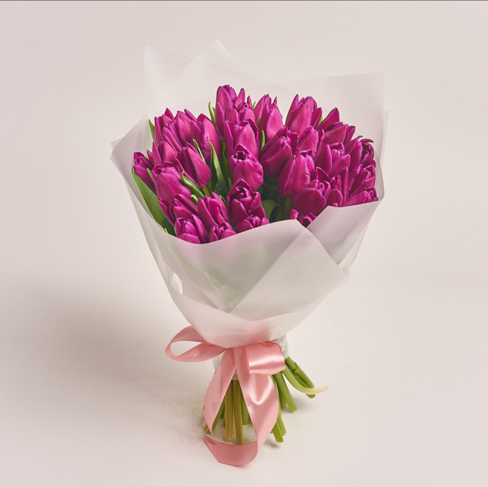 Un buchet rafinat de 35 de lalele mov este expresia perfecta a elegantei, misterului si sensibilitatii. Culoarea mov simbolizeaza nobletea, creativitatea si admiratia, fiind alegerea ideala pentru a transmite sentimente profunde si apreciere sincera.