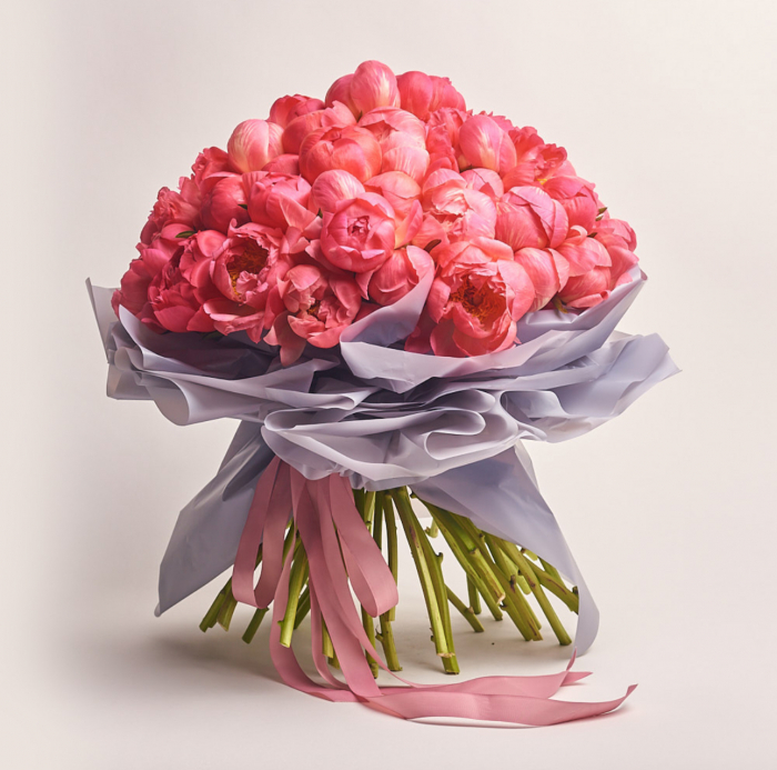 Un buchet spectaculos format din 51 de bujori roșii, simbol al pasiunii și eleganței absolute. Fiecare floare este atent selecționată pentru prospețime și intensitate cromatică, iar împreună creează un aranjament impresionant, bogat și romantic.